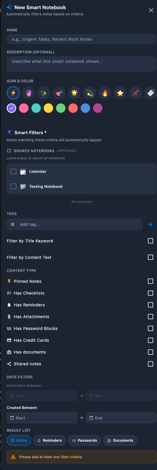Rich notes, attachments, templates, OCR, and extracted text stay in the same encrypted workspace.