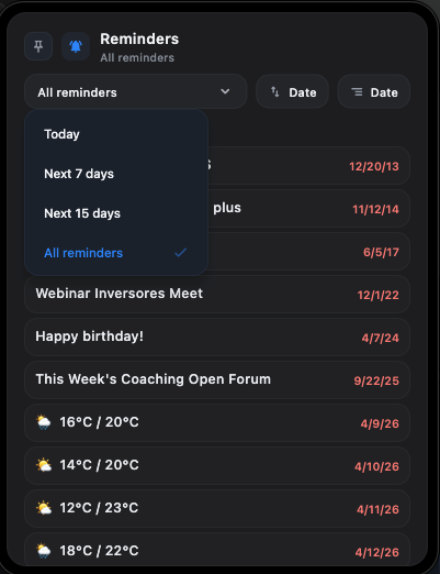RemindersMini task trayCalendar sync
